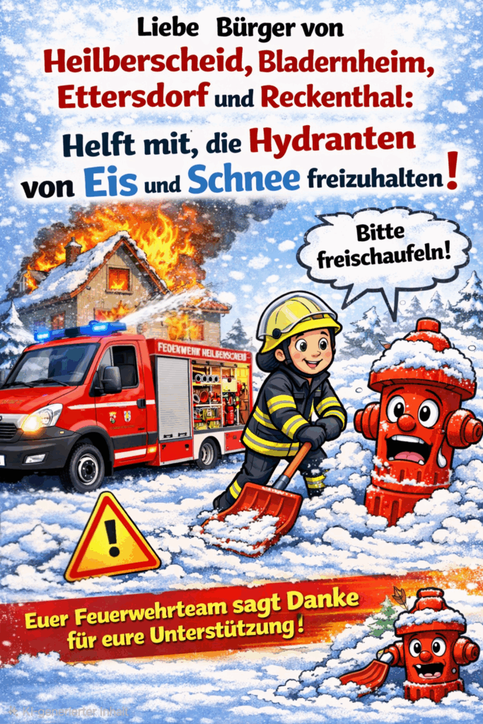 Feuerwehr Heilberscheid - NeuigkeitenTitelseite Hydranten freihalten Januar 8, 2026 Feuerwehr Heilberscheidhttps://feuerwehr-heilberscheid.de Vorheriger ArtikelEinladung Jahreshauptversammlung Förderverein Teile diesen Beitrag FacebookTwitterWhatsApp Weitere Beiträge Einladung Jahreshauptversammlung Förderverein Dezember 26, 2025 Frohe Weihnachten! Dezember 24, 2025 17. Adventsfenster für alle! Dezember 16, 2025 Neue Einsatzjacken vom 🎅 Dezember 6, 2025 Fortbildung Kettensäge November 22, 2025 Facebook / E-Mail FacebookMailYoutube